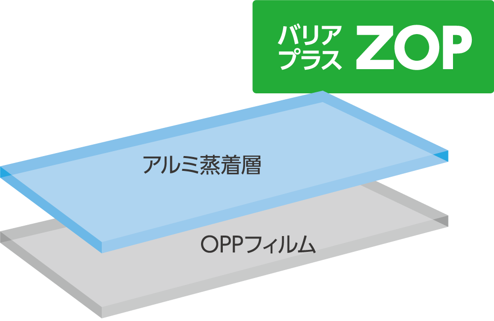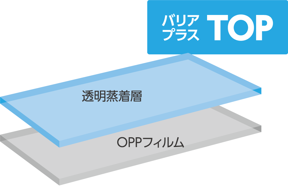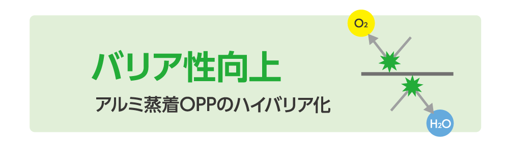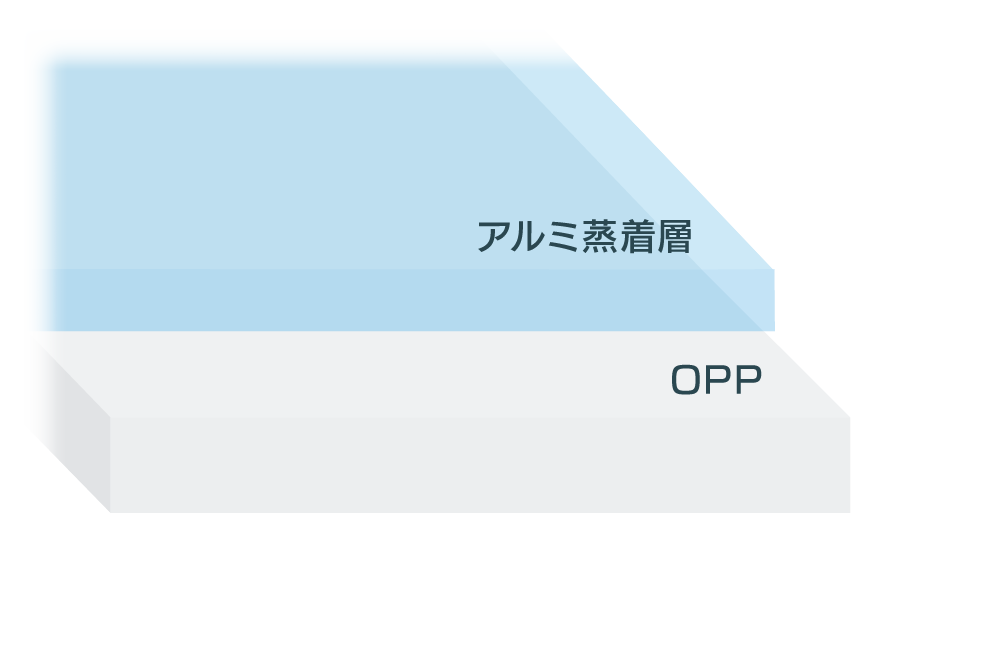 OPPフィルムに独自の蒸着技術とコート技術を施したハイバリアフィルムです。